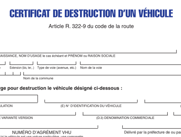 Vous recevez le certficat de destruction du véhicule rapidement.